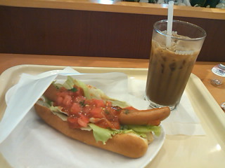 今日はドトール行きました! ドトールは結構来る。 植物のついたてが好き♪ いつもアイスコーヒーばっかだけど奮発して 新メニューを頼んでみた。 名前忘れたけど激辛ホットドッグ 上にトマトが乗ってて食うのが難しいデス(´Д`) 上品な食べ方を学びたい...辛くて、うまかったよ! んで、明日の事やら、9月の予定とか色々手帳に書き込んでからウィンドウショッピングして~ 昼から文センに劇団笑夢っていうケン君が所属している劇団の『ドリームカンパニー』をヨシと見に行きました。 石村や、F岡、M西部長も来てた。 高校の演劇は見たことあるんだけど、劇団の演劇を見るのは初めてだった。