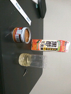 とかいいつつも書いてます(笑) 今日は本格的に実習しました! 専門外な事だったけど、スゲーわくわくします(笑) そして、開発の現場は凄いです(-_-; 守秘義務で話せないのが残念、。 とりあえず、今日の残業メニューのざるそばが売り切れててテンション下がった。 明日は牛丼だから押さえないと!! で、実習終わってからパナソニックの人に車で10km先のフジグランに連れて行ってもらいました! 大きさだけは新居浜のイオンくらいかな? 店内ぶらぶらした後に 食品売り場で1Lペットボトル飲料と(飲みもの代が結構かかると予想されるから) かつてバカどもとキング・オブ・ラーメンの称号を付けた日清の「チキンラーメン」 ※カテゴリー「旅」自動車運転免許合宿編を参照。 を買いました! 今は鯖味噌缶でウハウハやってます(笑) コップがなかったんで自作です(^O^) 最近、黒酢飲料にハマってるんすが、写真のやつはビミョーでしたね。 伊〇園がオススメですよ(^з^) 明日も頑張るよ ・使ったお金 ジュース代 220円 朝飯 170円 晩飯 220円 合計610円 ・フジグランで購入したもの チキンラーメン 298円 キリン生茶 168円 黒酢飲料 168円 鯖味噌缶×2 256円 お土産 580円 計 1412円