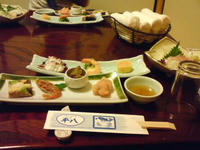 電車通の人は見たことあるとおもうけど、駅の近くの店な~ ウヘヘ。日本料理屋なんて何年ぶりかな? 外食は専ら洋食だからな(笑) みんなコース料理頼みました~ 写真は前菜。 刺身やら、よく分からないもん(笑) いや~久々のビールうめぇ(゚∀、゚)← その後、馬鹿デカい魚の煮付けやら天ぷら、天むす、吸い物… う~ん魚ばっかやな(´Д`) 日本人の魚離れが進んでるって話を聞いたけど 俺も魚離れが進んでますね(笑) あーじっちゃん、ばっちゃんおめでとう!! そうそう、コースの中にフグ料理あったんで思い出したんですが、 何気にハマニイは愛媛で一番フグ消費量が高いんですね 冬に山口のリベンジでどっかに食いに行きたいですね~(゚∀゚)