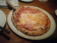 店の雰囲気が落ち着いた感じで良い! あと店員達はよく分からない言葉を発する 後者については実際に行ってみて確かめて下さい(笑) そして店員のネーチャンが可愛い(*´Д`) 後に一同が色々世話になったんだが(笑) 写真は俺のチョイスの半熟卵のピッツァ ウヘへ、半熟卵とか神だろ? 生地がもちっとしててウメェぜ! せっかくなんで6人で色々頼んで分け合うことに ・クワトロ・フォルマッジョ ⇒うはあチーズメインとかたまんねぇな! チーズ好きなんでGoodな一品 ・生ソーセージピッツァ ⇒ピザ on グ ラ タ ン まぁいいんじゃねぇの? ・2007年のがうんたらかんたら(忘れた ⇒なぜ南瓜をいれたし!食いにくさも相まって、あまりオススメできない 『黒豚パンチェッタと旧北条市の長野さんが育てたあま~い玉ねぎのピッツァ』 これは俺は好きな味だった! 全体的な感想としては まぁ値段はピザ1枚が約1000円~1600円と…ちと学生には高い値段 量的にはピザ一枚+サイドメニューで十分じゃないでしょうか? ピザ的には満足なものだったと思います!! パスタの人気が今一つらしいので頼まなかったんですが、今度食ってみよう(゚∀゚) デートとかにオススメっすよ☆ そういやスタンダードピザのマルゲリータ頼んでなかったぜ(笑)