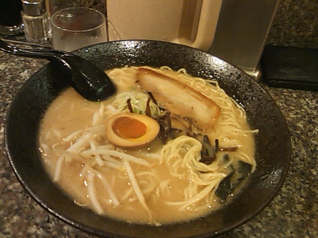 俺『いきます!←』 今日ならなんでもできる気がするぜ!\(^O^)/ で、A先輩がN川先生と話すのが終わるまで待ってたんだけど TTM研のH君が部屋まで来てくれてね H君『だんでぃさん、車で来てるんで駅まで送りますよ^^』 俺『…すまん、ラーメン食いに行くんだ。』 H君『ラーメンっすか!?(笑』 H君の誘いをことごとく断っているんで、そろそろ誘いが来なくなるような気がします(笑) H君マジでいいやつだわ(ToT) で、まぁ待つこと2時間 雨風が強い中、先輩の車でS氏と一緒にラーメン食いに出かけました(笑) 今回のお店は『天風』(運良く開いてた) スタンダードが390円とは安い! 早速、とんこつしょうゆをオーダー 大盛りで490円とは嬉しい。 しかも、美味い! 量が多い!! A先輩がとんこつしお、S氏がみそ頼んでたけど、みそが一番うまかったな(^w^) 量、値段、味と大満足の御一行でしたとさ